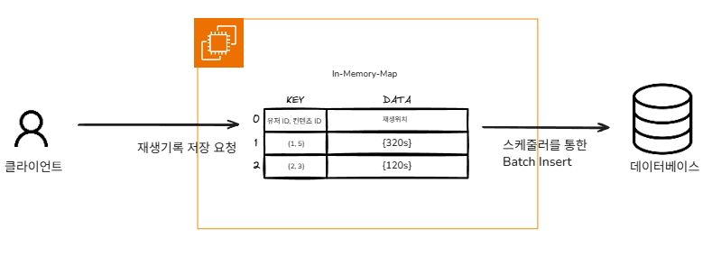 해결책은 비교적 명확했습니다. 요청이 들어오면 일단 메모리에 쌓아두고, 주기적으로 한 번에 처리하는 방식입니다.