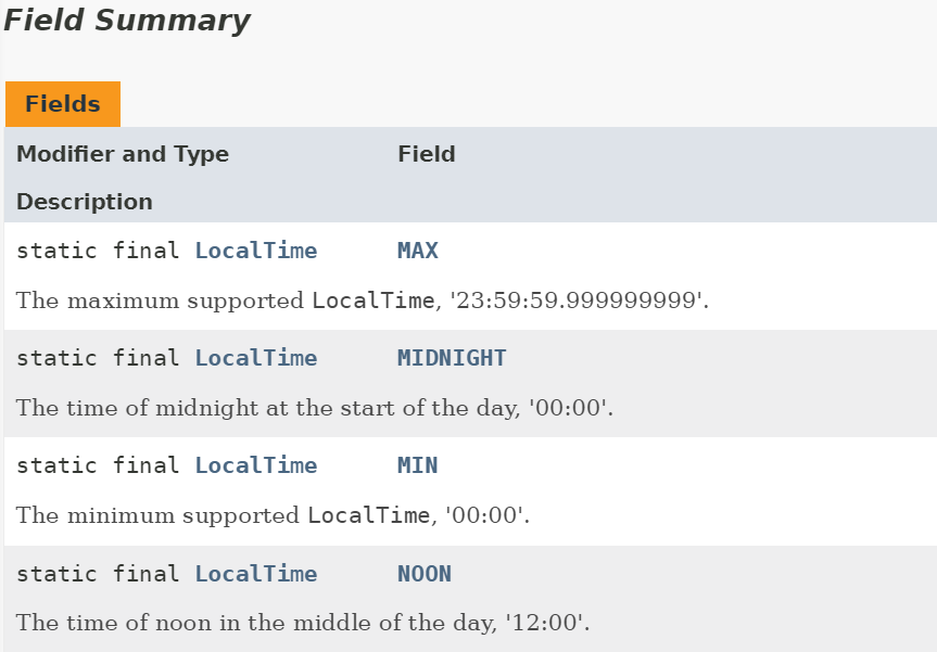 위 필드들의 type은 모두 Localtime 이다. 이것도 약간 기존까지는 못 본 경우인데 이런 정적 필드를 다음과 같이 다루면 된다.